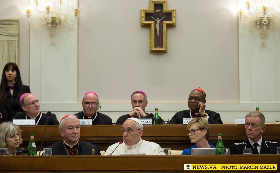 A Szentatya csütörtökön délelőtt a Pápai Tudományos Akadémia nagytermében találkozott az emberkereskedelem e szörnyű jelenségének szentelt nemzetközi konferencia tagjaival. Immár második alkalommal rendeztek a Vatikánban tanácskozást e súlyos aktualitással bíró témáról. Április 9-én és 10-én „A Rendőrség és az egyház partnerek az emberkereskedelem elleni küzdelemben” címet viselő megbeszélésen a világ minden részéről szakemberek, a rendőrség és a kormányok képviselői tanácskoztak. Theresa May brit belügyminiszter is jelen volt a konferencián, az Interpol és az Europol küldöttei mellett. A közép-kelet európai régióból Lengyelország, Szlovákia, Románia, Litvánia képviseltette magát. Az emberkereskedelem három áldozatának esetét ismertették a tanácskozáson, amelyek között volt egy chilei és egy szlovák lány, valamint a magyar Boglárka története is.