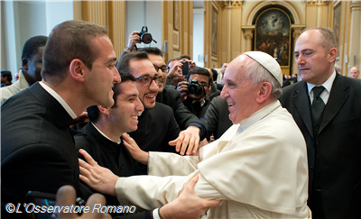 A pápa rögtönzött szavakkal hozzátette: gyakran halljuk, hogy valaki azért nem járul a bűnbocsánat szentségéhez, mert gyóntatójából hiányzott a lelkipásztori szeretet. És a rossz tapasztalat következtében eltávolodik a gyónástól. Ez soha nem történik meg, ha a gyóntató Isten jóságából fakadó atyai magatartással fordul a bűnbánó felé.